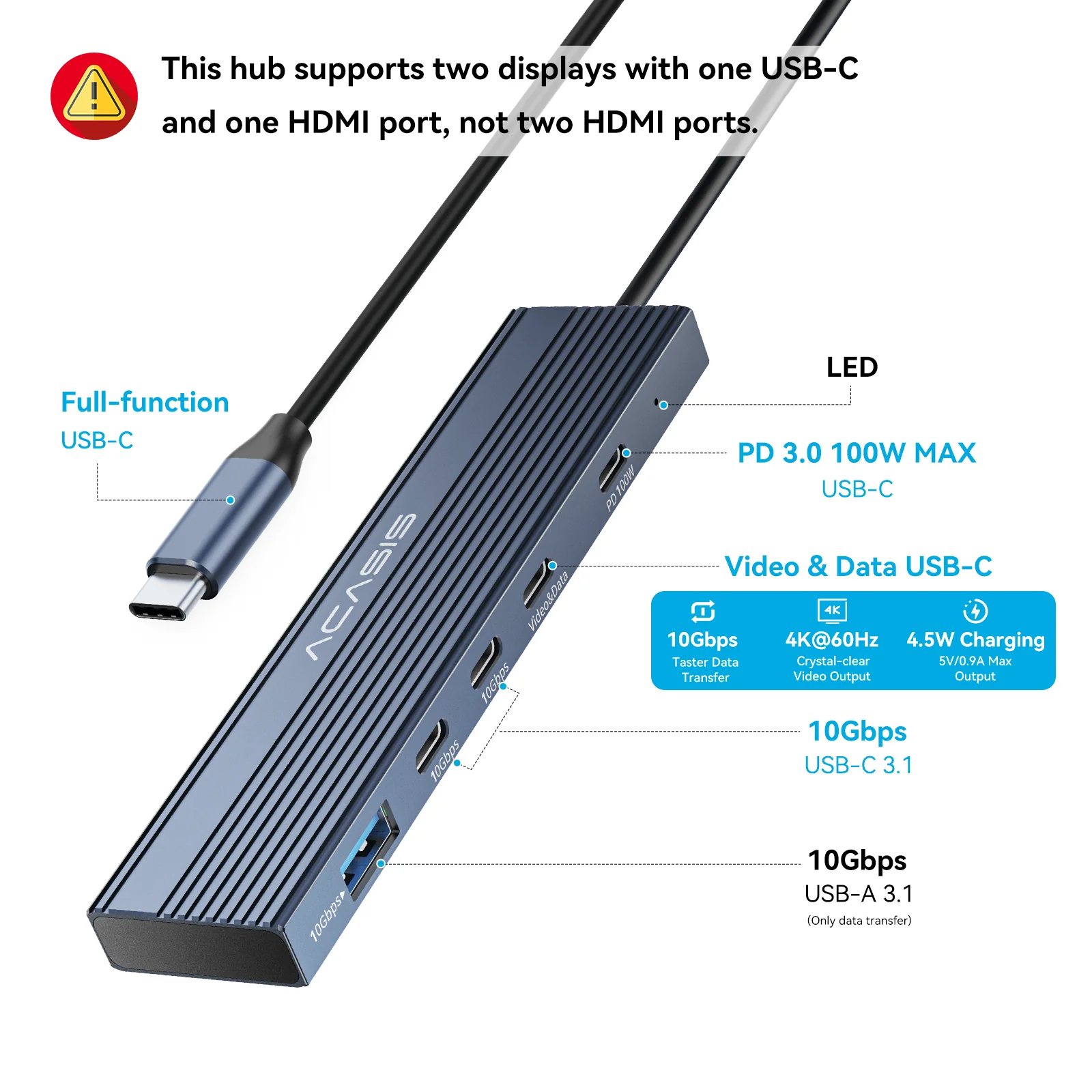 Acasis 5-in-1 USB C Docking Station with 4K@60Hz Video Output