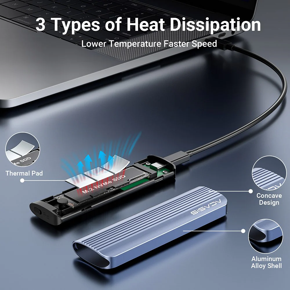 ACASIS nvme enclosure supports NVMe/PCIe M-Key/B+M Key SSDs(Max 8TB) with size 2230/2242/2260/2280. Compatible with Windows, macOS and Linux.
