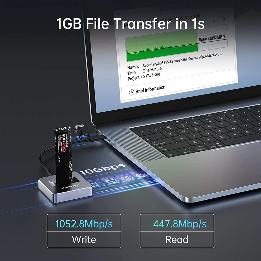 Storing more large files and expand the capacity.Experience increased productivity with the ACASIS NVMe/SATA SSD Enclosure. Plug-and-Play convenience, it facilitates super-speed data transfers up to 10Gbps.For the Cinephile