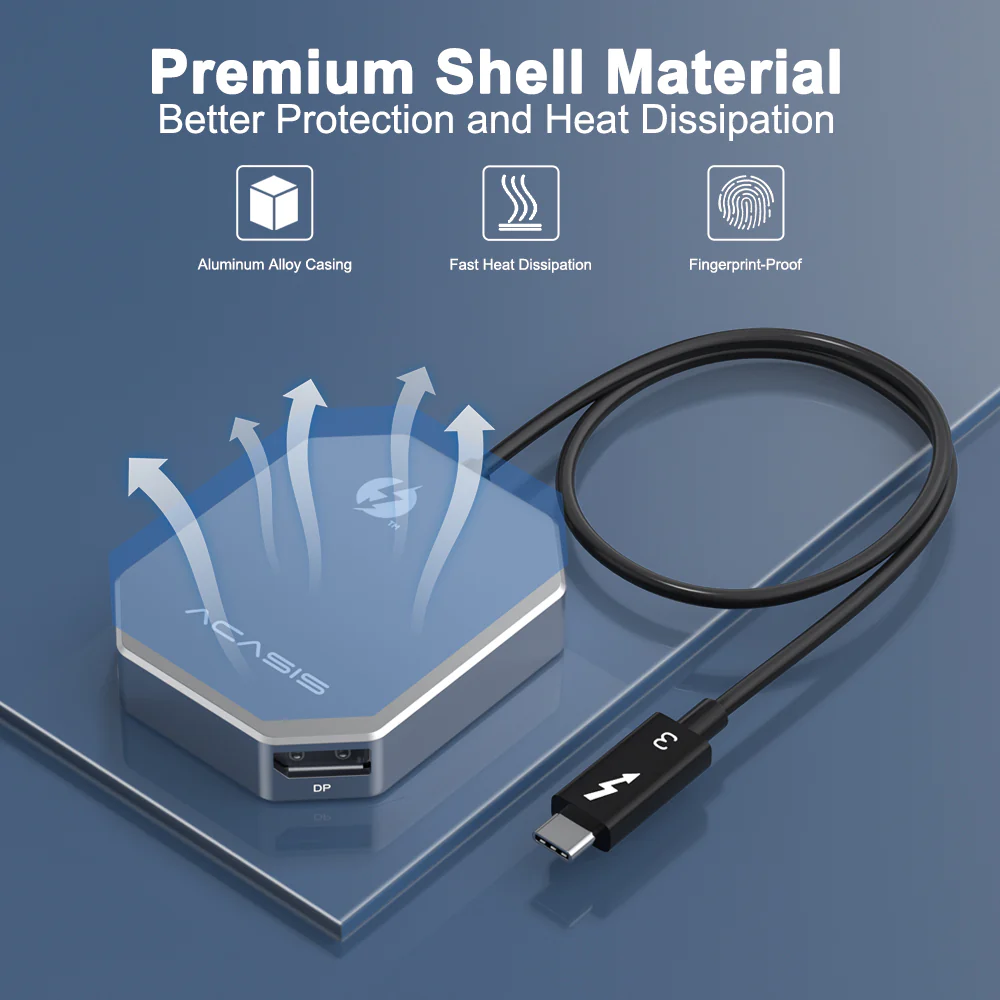 This Thunderbolt 3 converter is officially certified by Intel to enjoy Thunderbolt 3 40Gbps transmission speed and great capability with Windows/macOS.