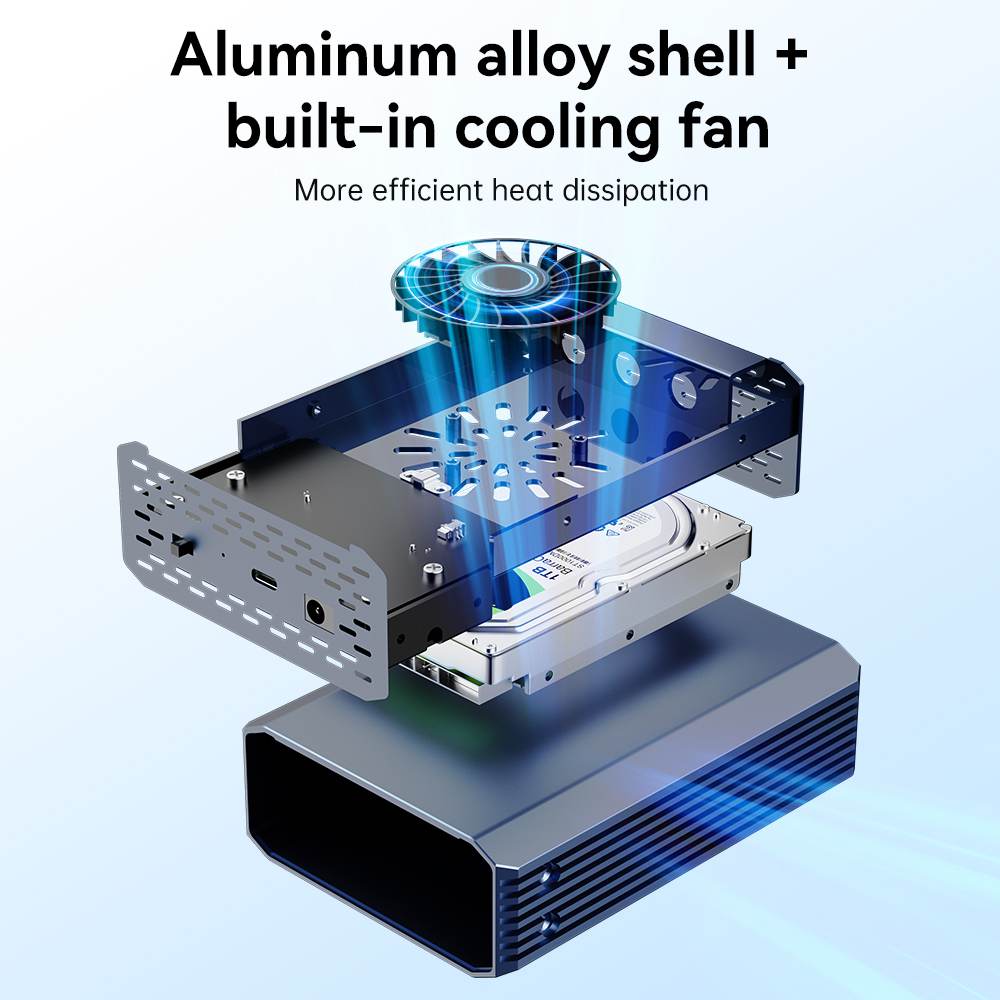 [Powerful heat dissipation] All-aluminum CNC Shell + Turbo fan + Side honeycomb design. Protect hard drive security and promote hard drive heat dissipation.